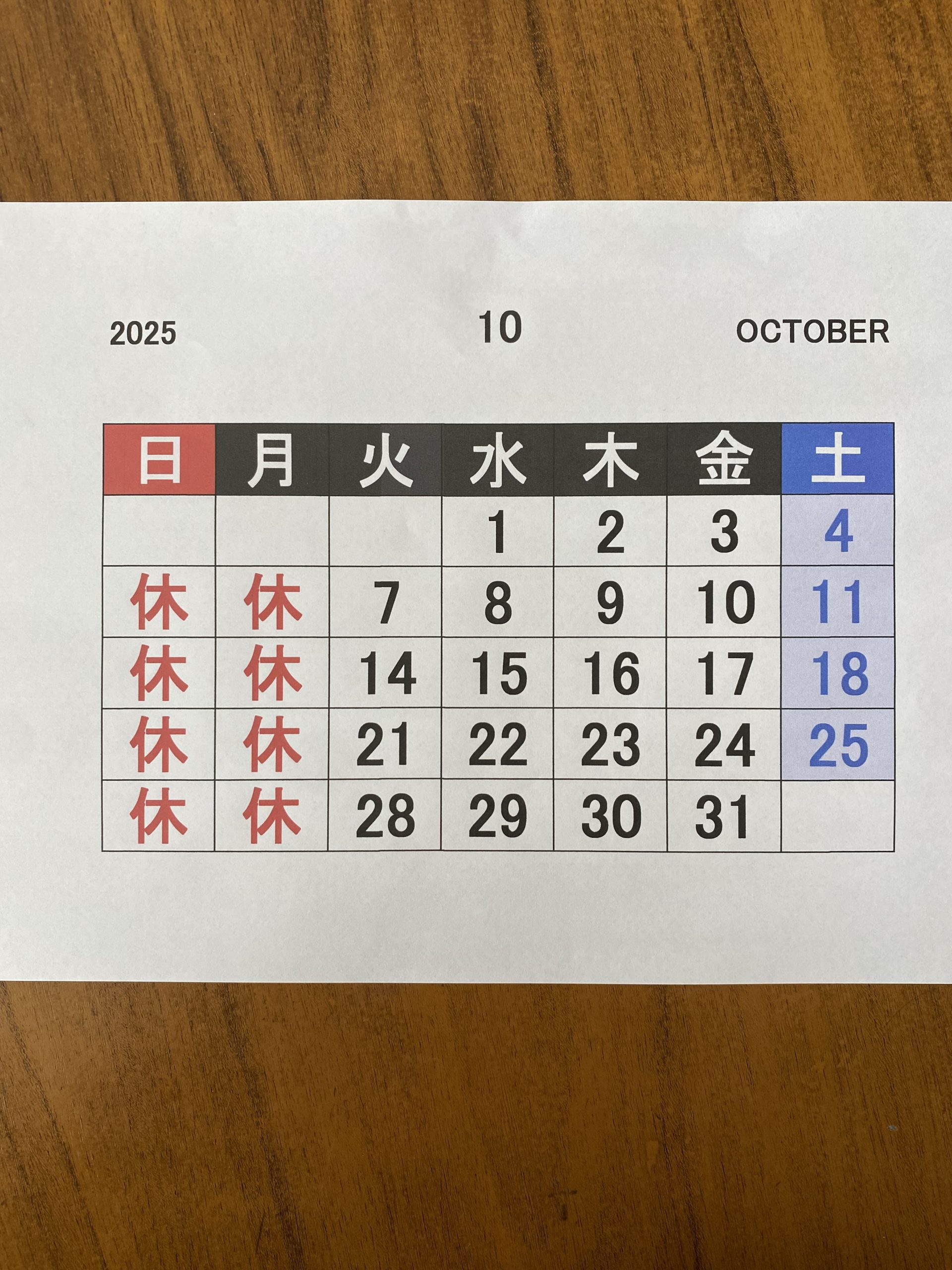 🍁10月の定休日のお知らせ🍁